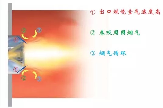 分级燃烧技术虽然可以一定程度降低氮氧化物的产生,但是很多燃烧器在实际使用中没有完全实现助燃空气和燃气的充分混合,炉膛内存在局部高温区,其温度高于产生热力型NOx的温度,造成NOx浓度超标。另一方面,有可能出现燃料和空气的混合流动不佳,造成一氧化碳超标,局部积碳等不完全燃烧的现象。为了降低反应温度,需要尽可能使火焰分散,扩大火焰形状,也就是说需要结合炉膛配合使用,而大多是情况是炉膛体积有限,为了避免火焰相对炉膛过大,通常会降低燃烧器的输出功率,这样可以降低NOx浓度及保证充分燃烧,但是缺点是心博(中国)的功率下降了,而且有烟气冷凝的风险。