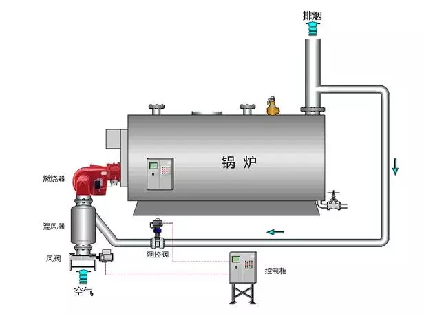 烟气再循环技术指的是将燃烧后的部分烟气(主要为水蒸气、二氧化碳和氮气)引出返回至燃烧器,与新鲜的空气混合参与燃烧。再循环烟气的温度与炉膛内的火焰温度比要低得多,能够显著降低炉膛内的温度,减少炉膛容积热强度。同时,由于引入的烟气含氧量极低,在炉膛内可以有效降低炉膛内的氧气浓度,有效抑制了NOx的形成。